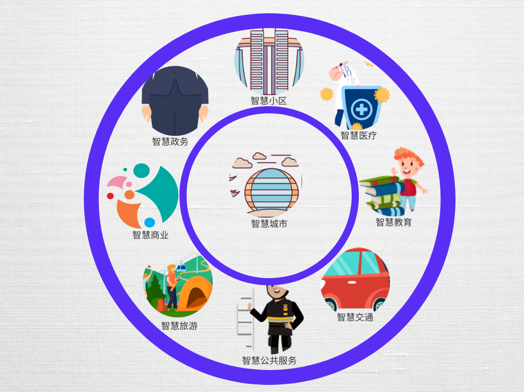 智慧城市主要包含:智慧小区、智慧医疗、智慧水利、智能交通、城市安全、城市双碳(环境治理)。